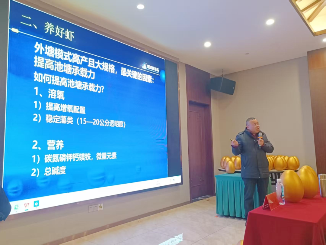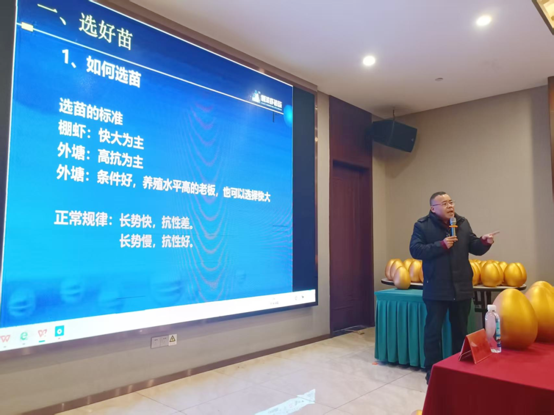 1月11日,利洋公司2026年首场"选好苗满江红配资,养好虾"虾苗推广会在江苏盐城大丰西团镇举行。